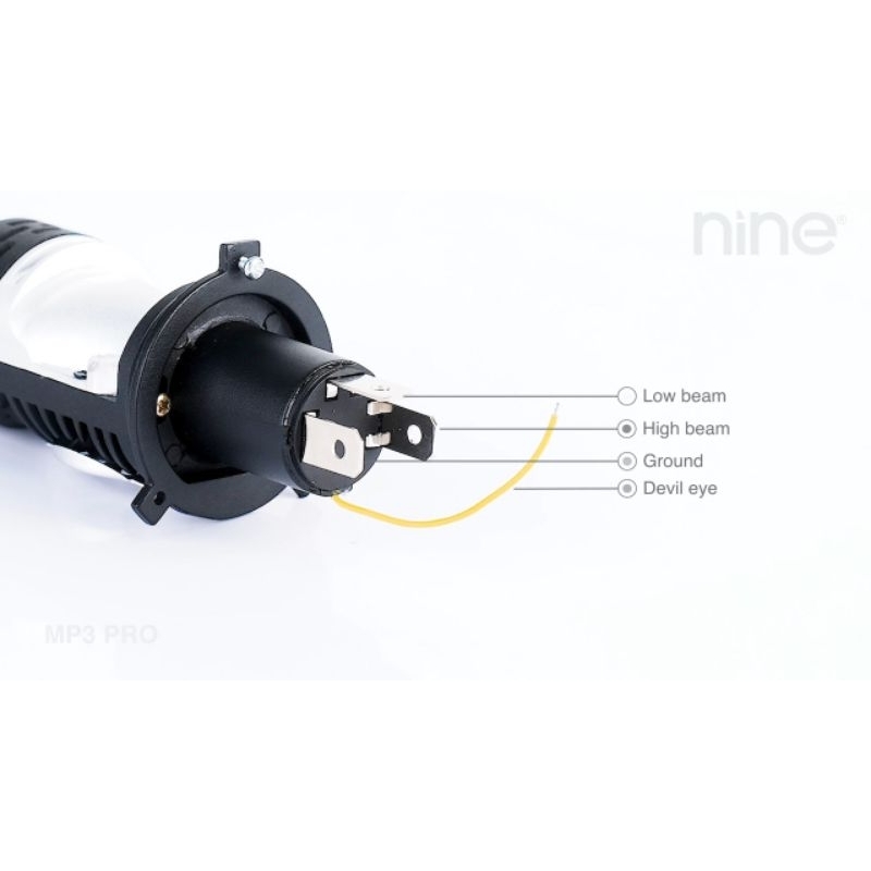 LAMPU UTAMA H4 MINI PROJECTOR BLUE LENS NINE LUMINOS MP3 PRO 50 WATT MOTOR MOBIL
