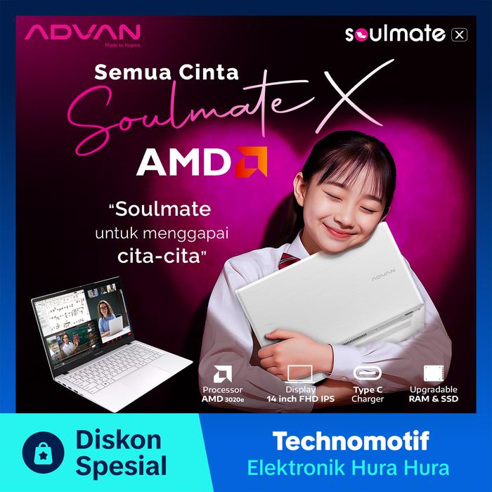TERLARIS (NEW ARRIVAL) ADVAN SOULMATE X 14” IPS FHD AMD 3020E 4GB128GB GERATIS WINDOWS 11 ORIGINAL LAPTOP NOTEBOOK UPGRADEABLE