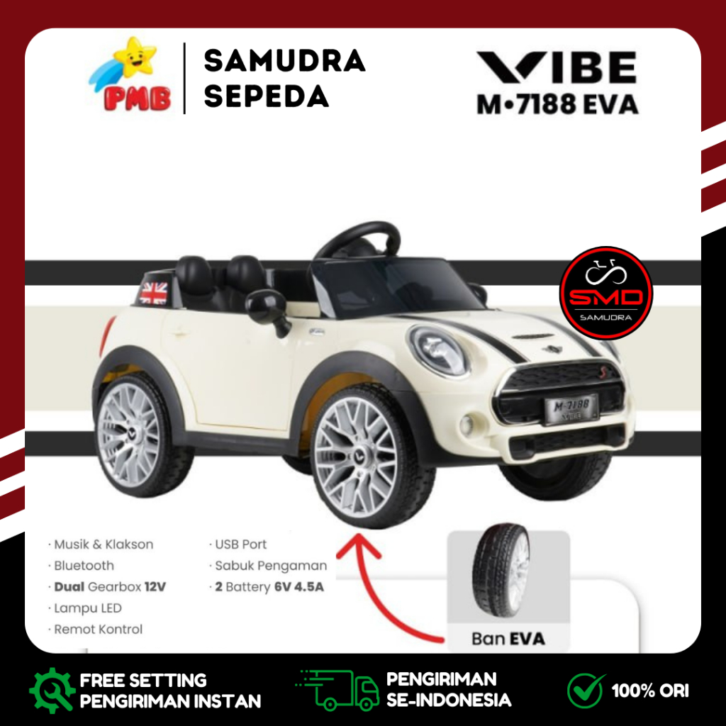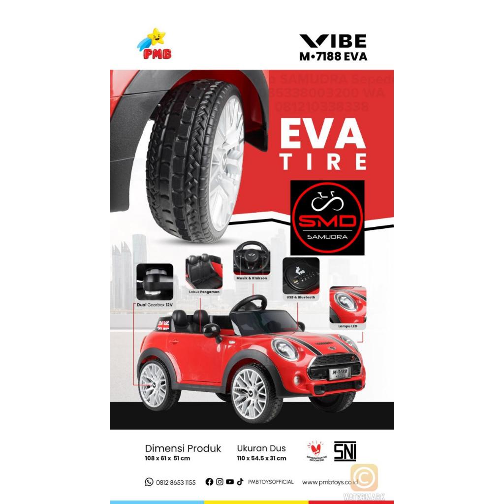 Mobil Aki Mainan Anak Remote PMB 7188 Eva Mini Cooper Mortein Dual Dinamo 12V Murah BDG