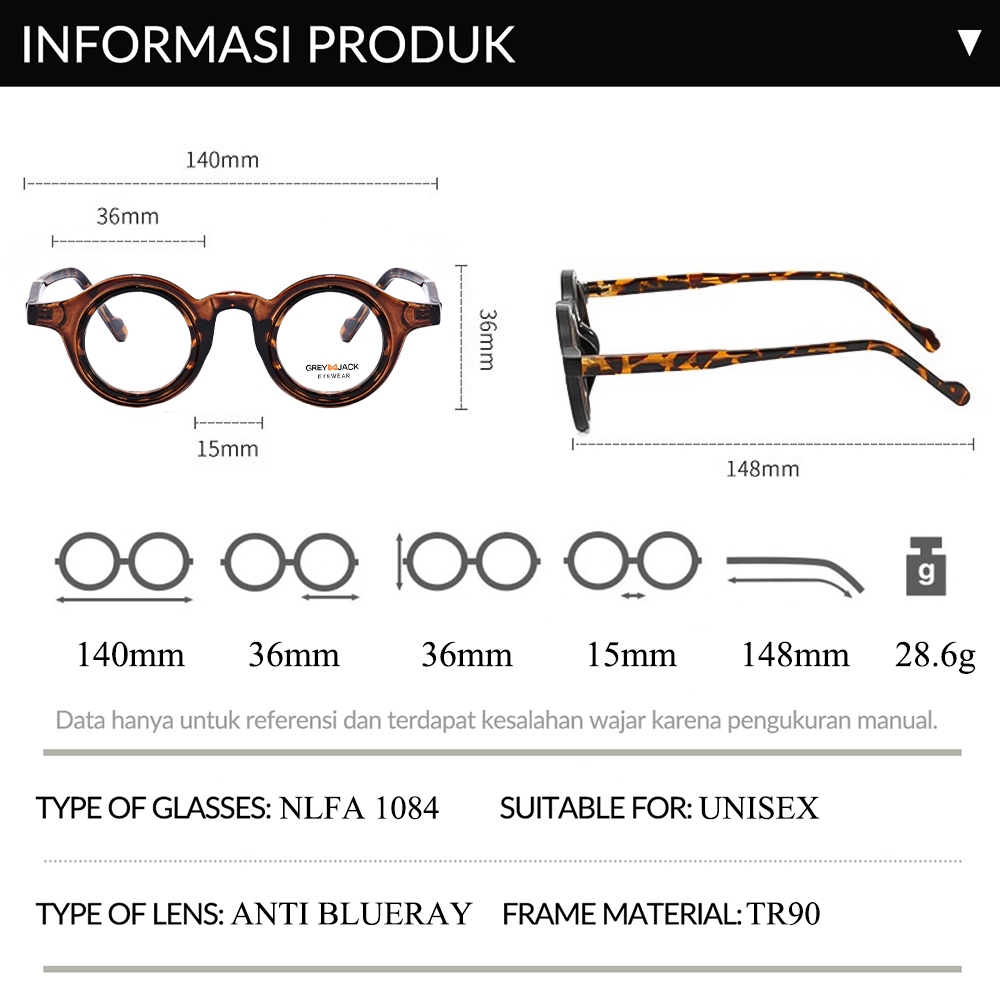 Grey Jack Kacamata Antiradiasi Blueray TR90 Model Bulat Stylish Pria Wanita Bisa Lensa Minus Antiradiasi Blueray Bluecro
