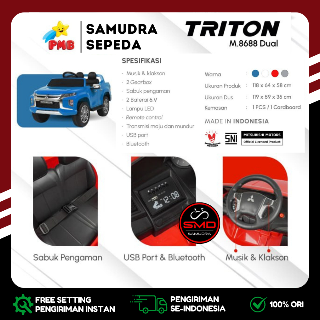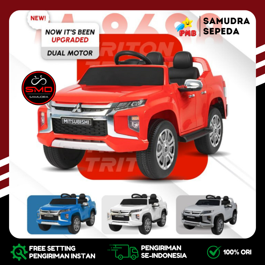 Mobil Aki Mainan Anak Cas Remot PMB 8688 Mitsubishi Triton 12 V 2WD Murah BDG