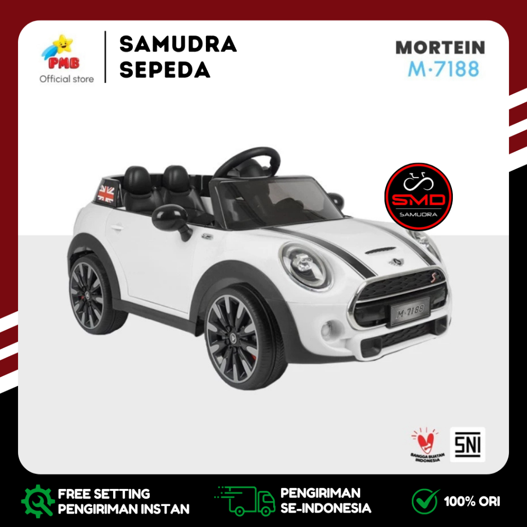 Mobil Aki Anak Cas Remote PMB 7188 2 Dinamo 12V Mini Cooper Murah BDG
