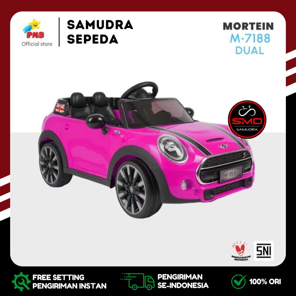 Mobil Aki Anak Cas Remote PMB 7188 2 Dinamo 12V Mini Cooper Murah BDG