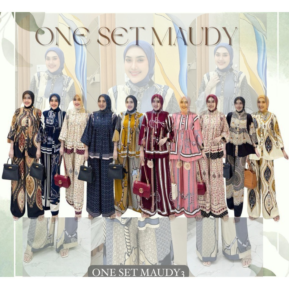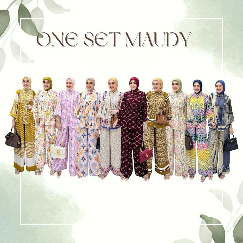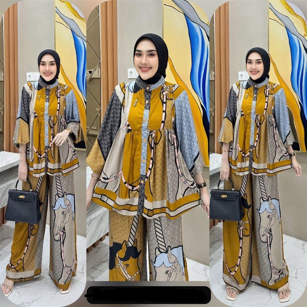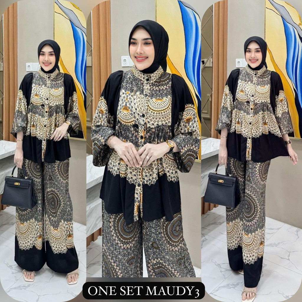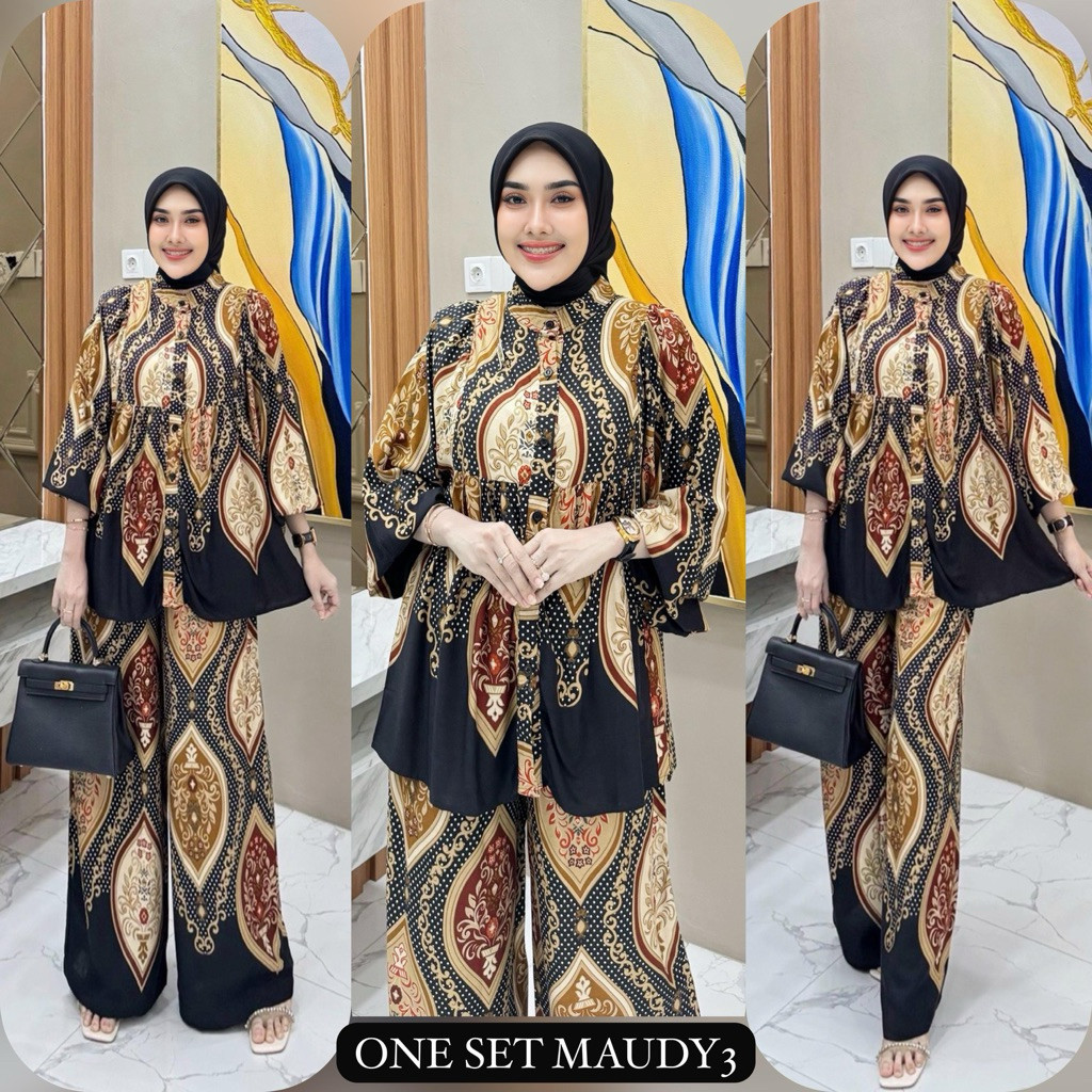 ONE SET MAUDY Setelan Celana Kulot Jumbo Rayon Motif Baju Dewasa Wanita Adem OneSet Busui Friendly