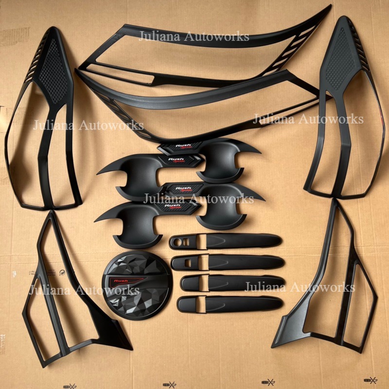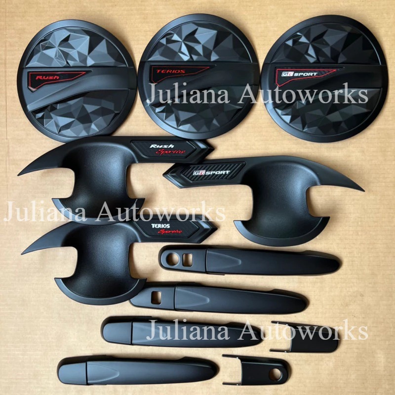 Paket Garnish Lampu Outer Handle Tank Cover Bensin All New GR Sport Rush Terios Hitam Doff