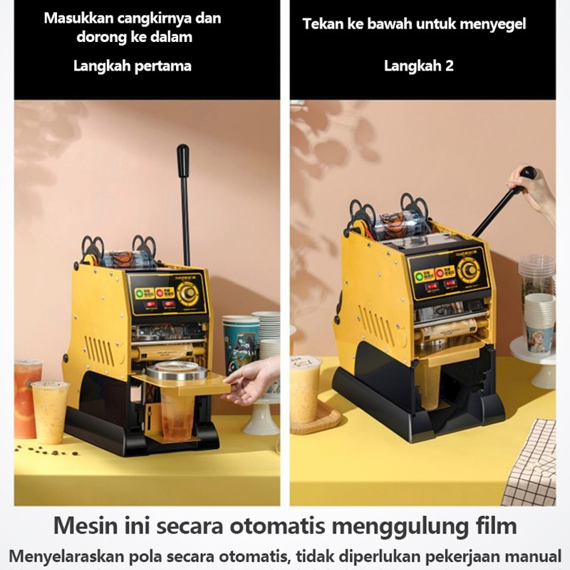 LENODI Mesin Penyegel Cangkir Teh Susu Tampilan Digital Peralatan Toko Teh Susu Sepenuhnya Otomatis Komersial Berbagai Bahan