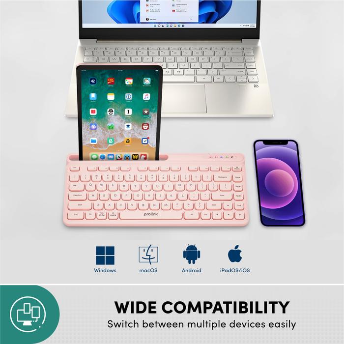 TERLARIS PROLINK KEYBOARD WIRELESS BLUETOOTH MULTIDEVICE SLIM | ANTIBACTERIALPINK