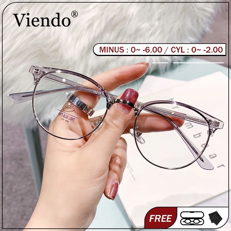 Viendo Kacamata Photocromic Minus Night Drive Bluecromic Frame Wanita Pria Cowok Potocromic Fotocromic Besi Bulat Frame Anti Radiasi