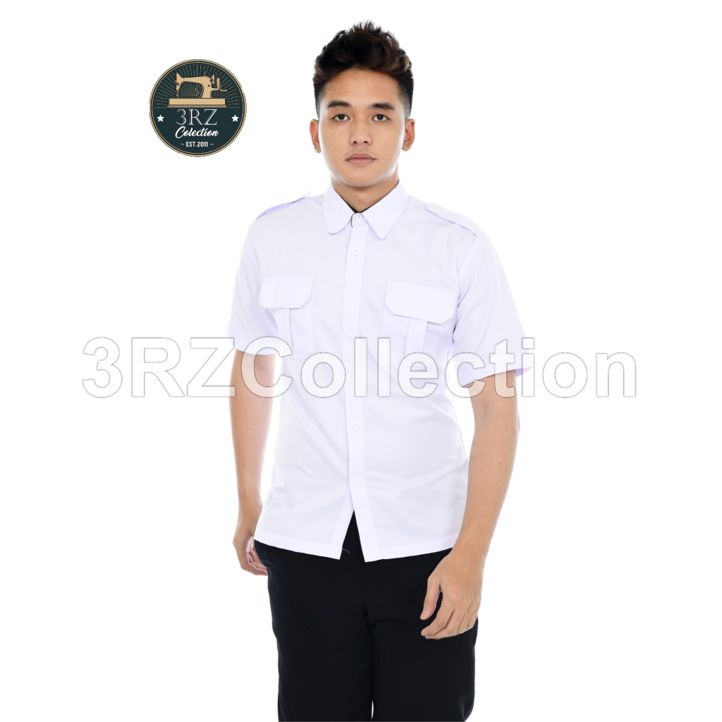 Baju Dinas Putih Pria Lengan Pendek Seragam PNS Putih Pria Kemeja Pdh Putih Pns Pria Kerah Hitam Terbaru