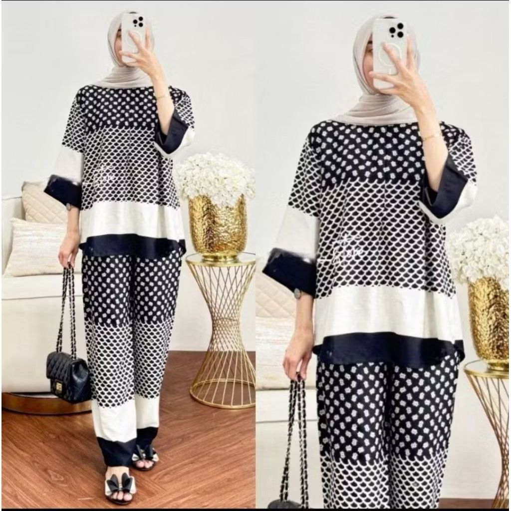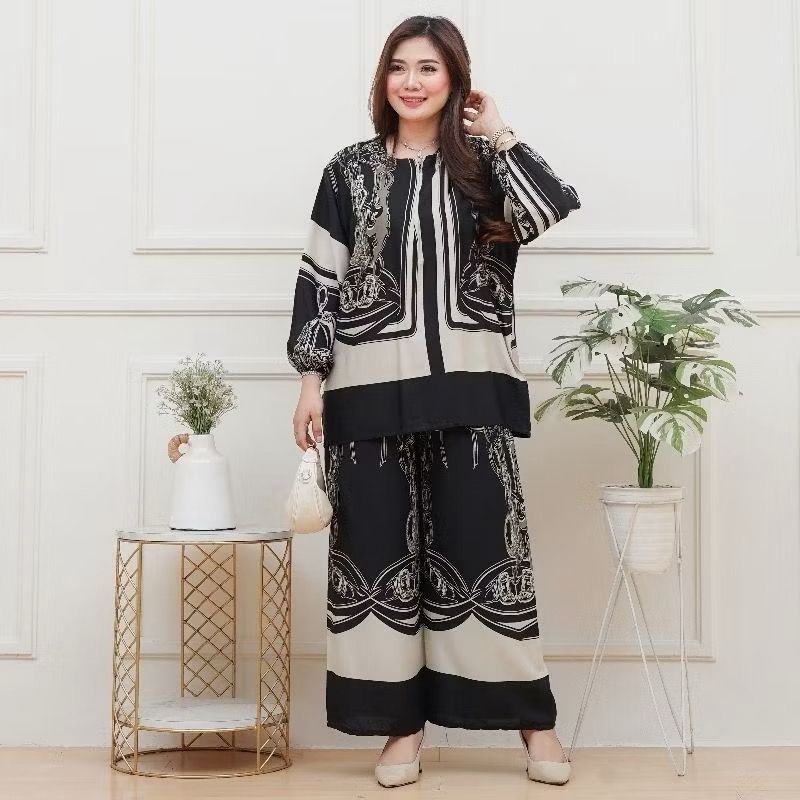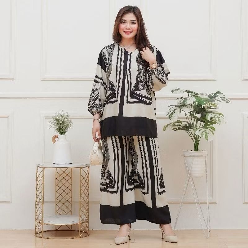 PROMO ONE SET Luna Setelan Celana Kulot Bahan Rayon Premium Busui JUMBO LD 110-120