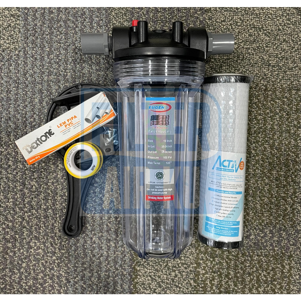 Paket Filter Air 10" 1 Tahap Housing + CTO / GAC Untuk Menyaring Bau Got / Comberan