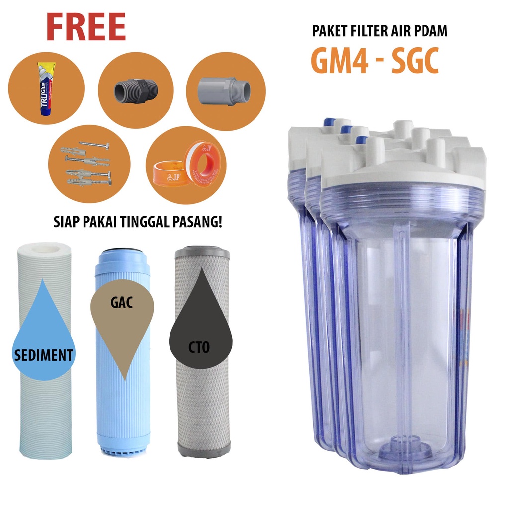 Filter Air Sumur / Filter Air Keruh / Paket Filter Air Nanotec 10 Inch 3 Tahap Penyaringan SGC