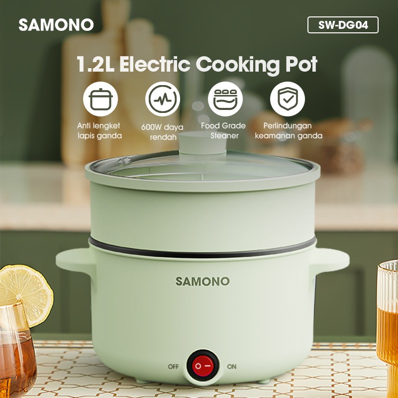 SAMONOI Panci Listrik 1,2L Dengan Kukusan Multi Cooker 600 Watt Food Grade Inner Pot Lapisan Ganda SW-DG04 Garansi 1 Tahun