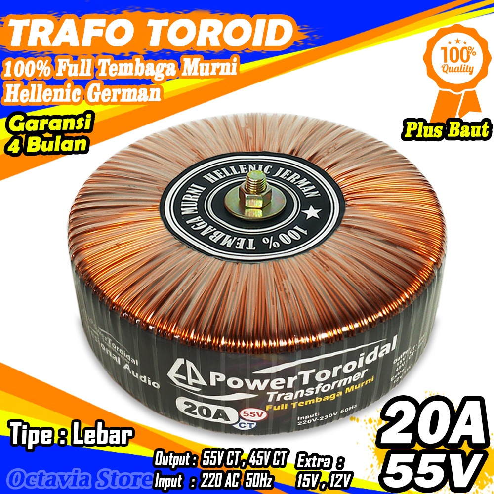 Trafo Toroid 20A CT 55V 45V (MURNI) Full Tembaga Murni Hellenic Jerman