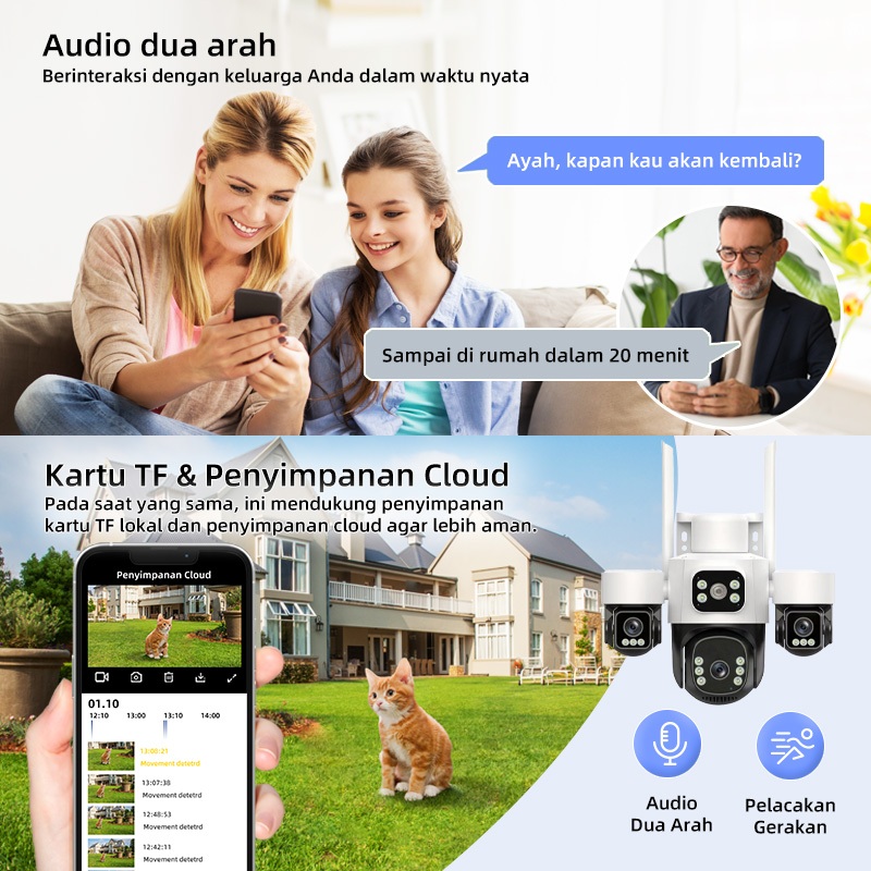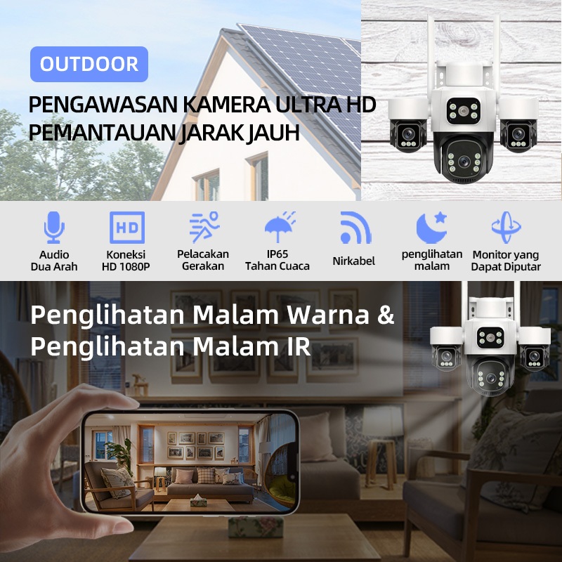 Franwell CCTV WiFi 3 Lensa Outdoor Gambar Jelas Siang Malam Tahan Hujan Mudah Pasang HP Pantau