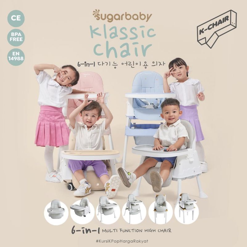 [Star] Sugarbaby korean style klassic high chair 6in1 - kursi makan anak bayi FREE BUBBLE