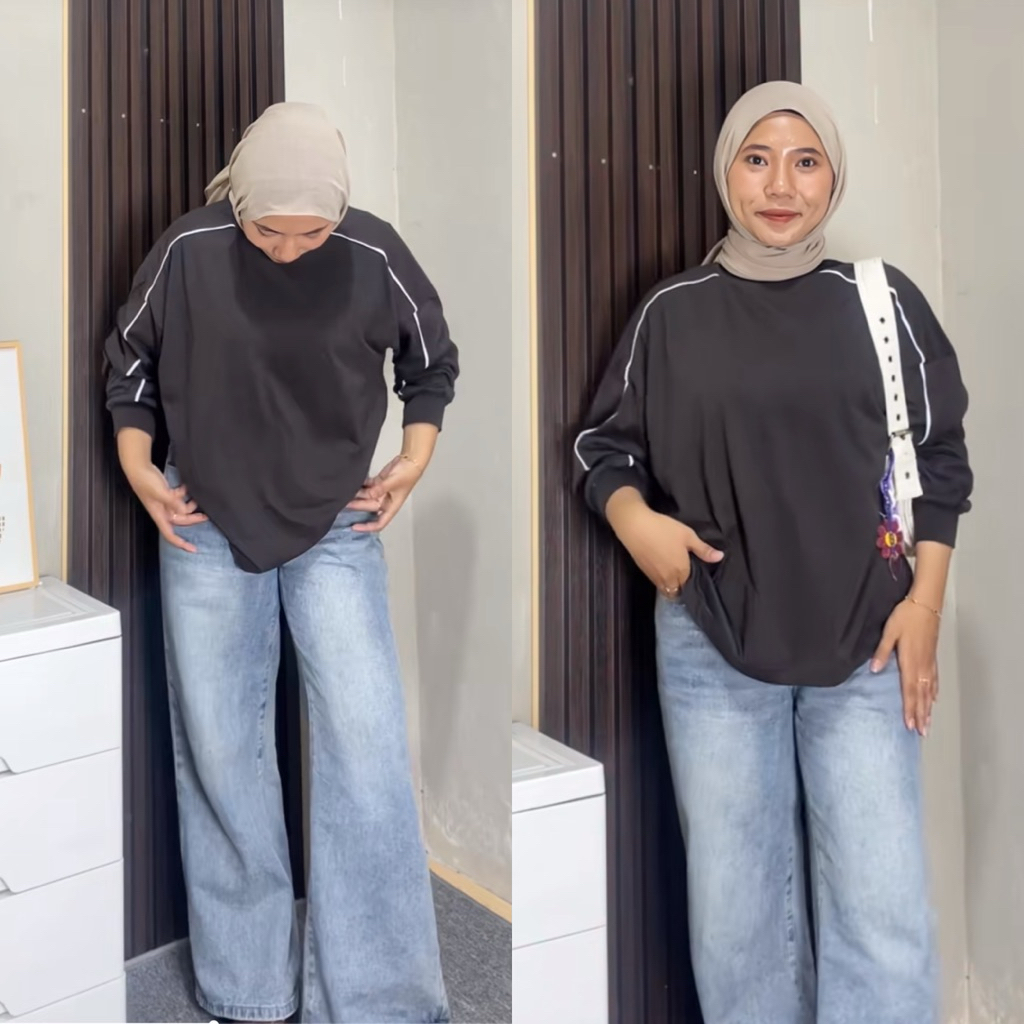 Tetta Kaos Oversized Lengan Panjang Sweatshirt Wanita Casual Combed Model List Polos