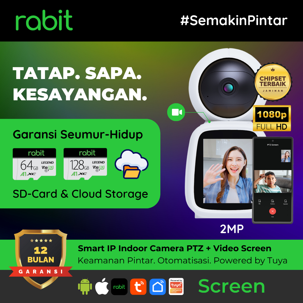 RABIT SMART IP CCTV WIFI CAMERA INDOOR PTZ SCREEN FULL HD 2 MP TWO WAY VIDEO CALL