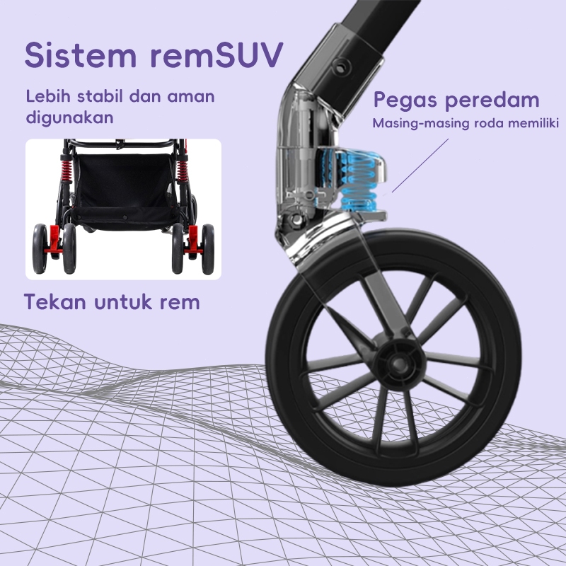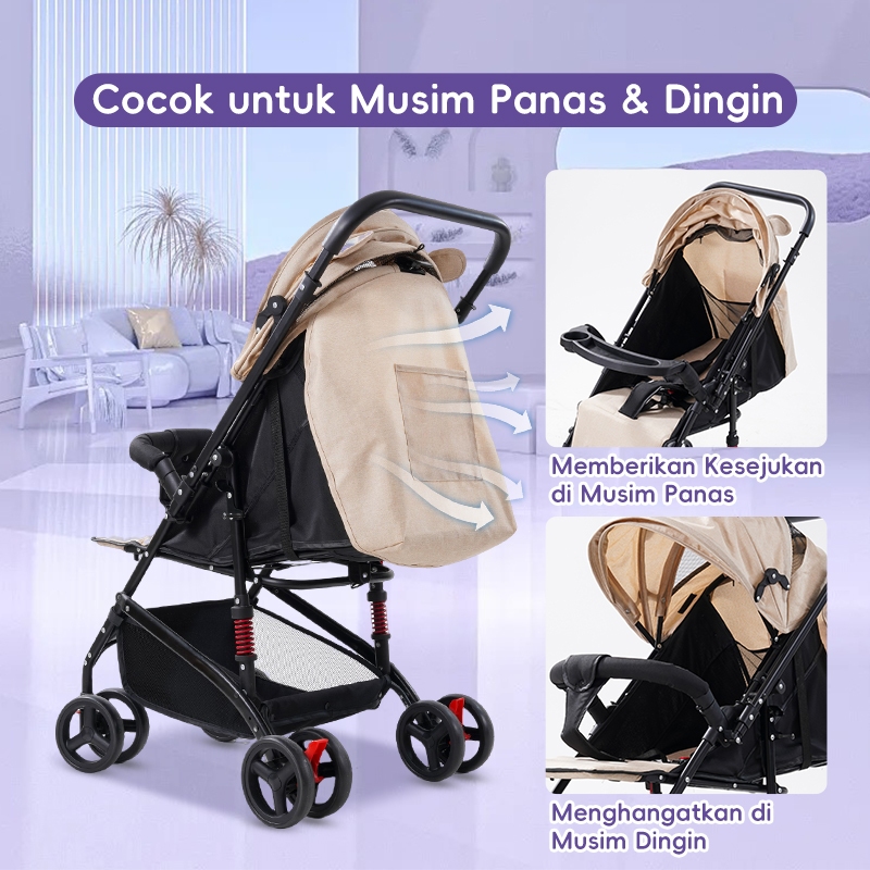 [Star] BEIGE Stroller Bayi AutoFold Portabel Travel Bisa Tidur Kapasitas 100kg Ringan Newborn