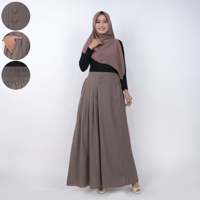 CULLOTE PLEATS - CELANA KULOT HUSNA KANCING 2 - Celana Wanita Highwaist Premium - Rok Kulot Cellie