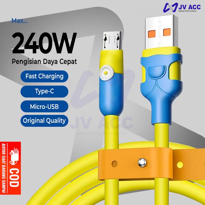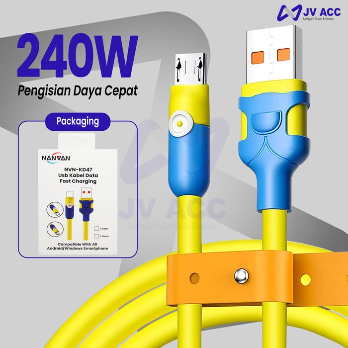 TERLARIS NANVAN NVNKD47 KABEL DATA CHARGER COLOURFULL SILICONE MICRO USBTYPE TIPE C FAST CHARGINGKUNING 1M MICRO