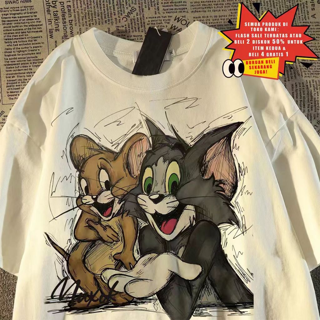 Kaos Unisex Korean Style Motif Lucu Tom & Jerry - Bahan Katun Nyaman Free Ongkir