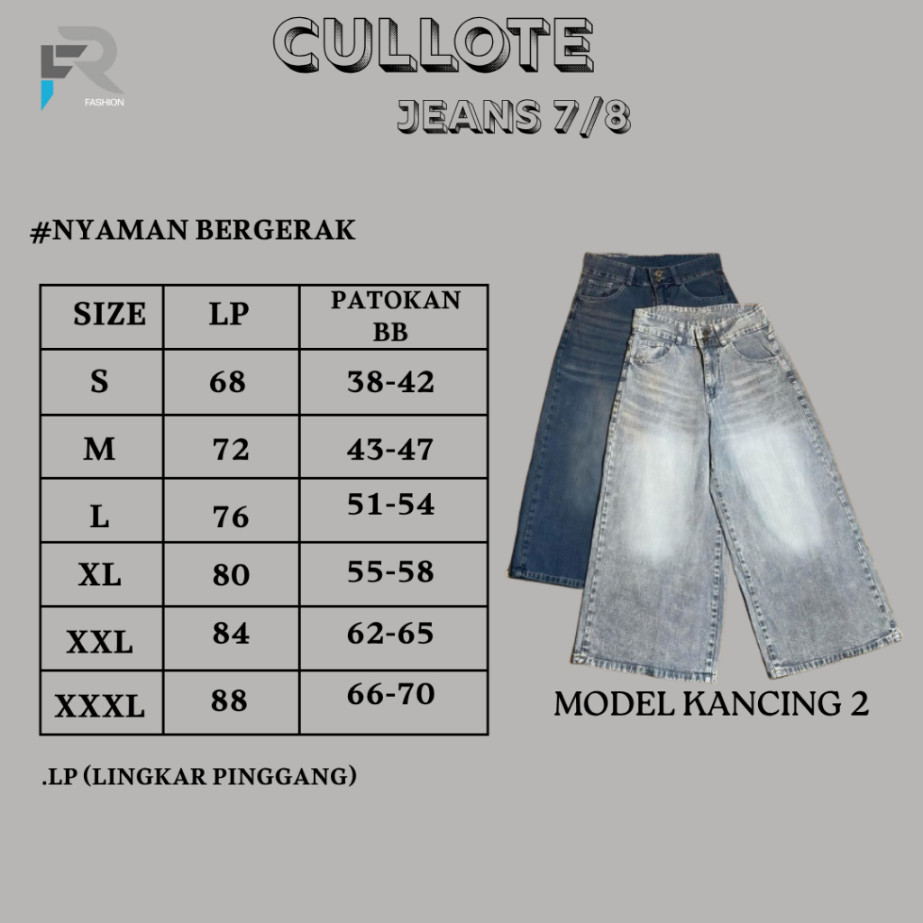CELANA CULLOTE JEANS WANITA 7/8 RETRO JEANS 1950