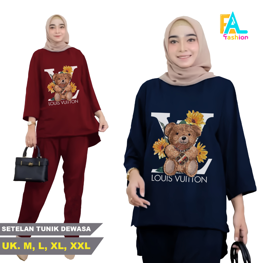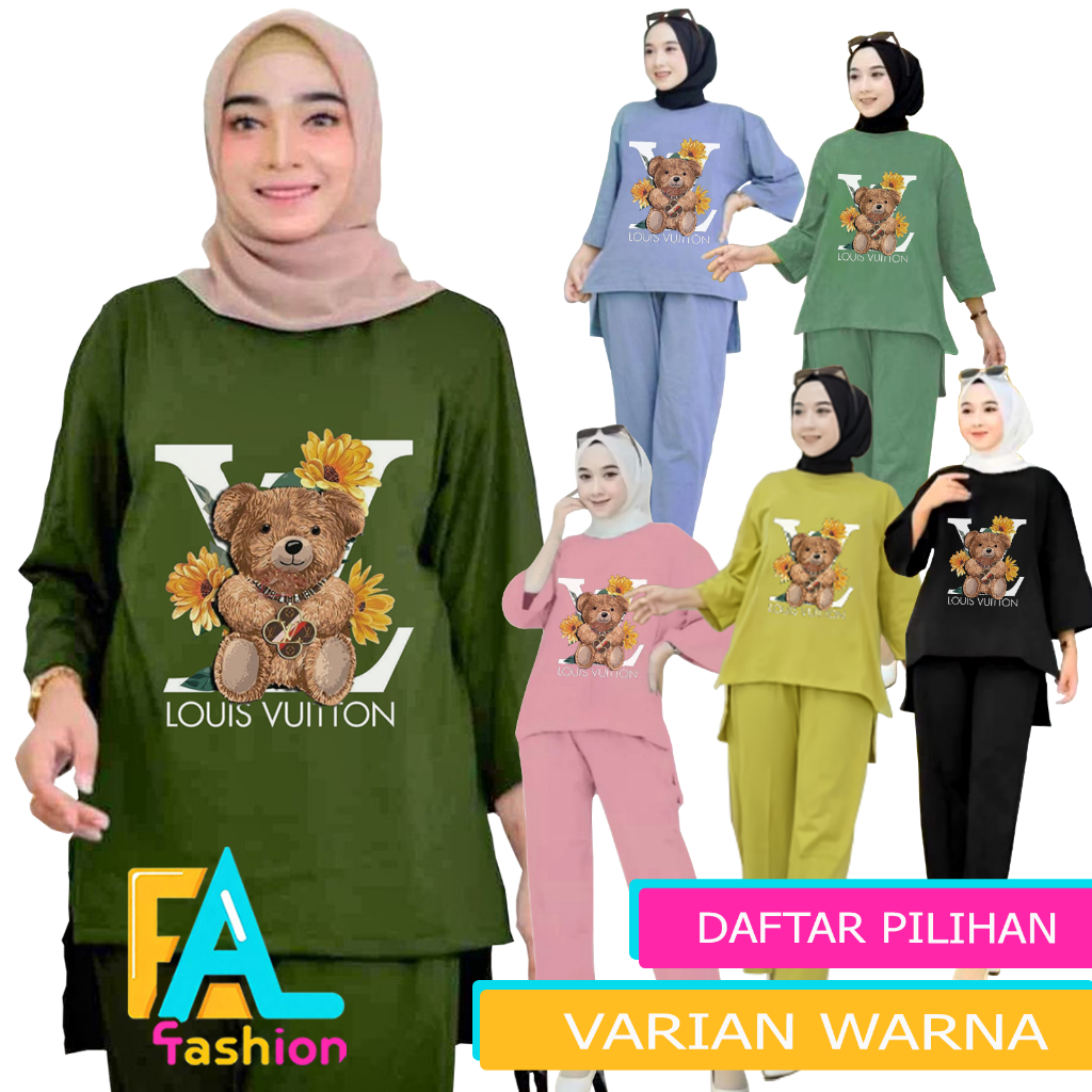 AL Fashion - Baju Setelan Wanita One Set Kekinian Atasan Lengan Panjang Sablon DTF Celana Panjang