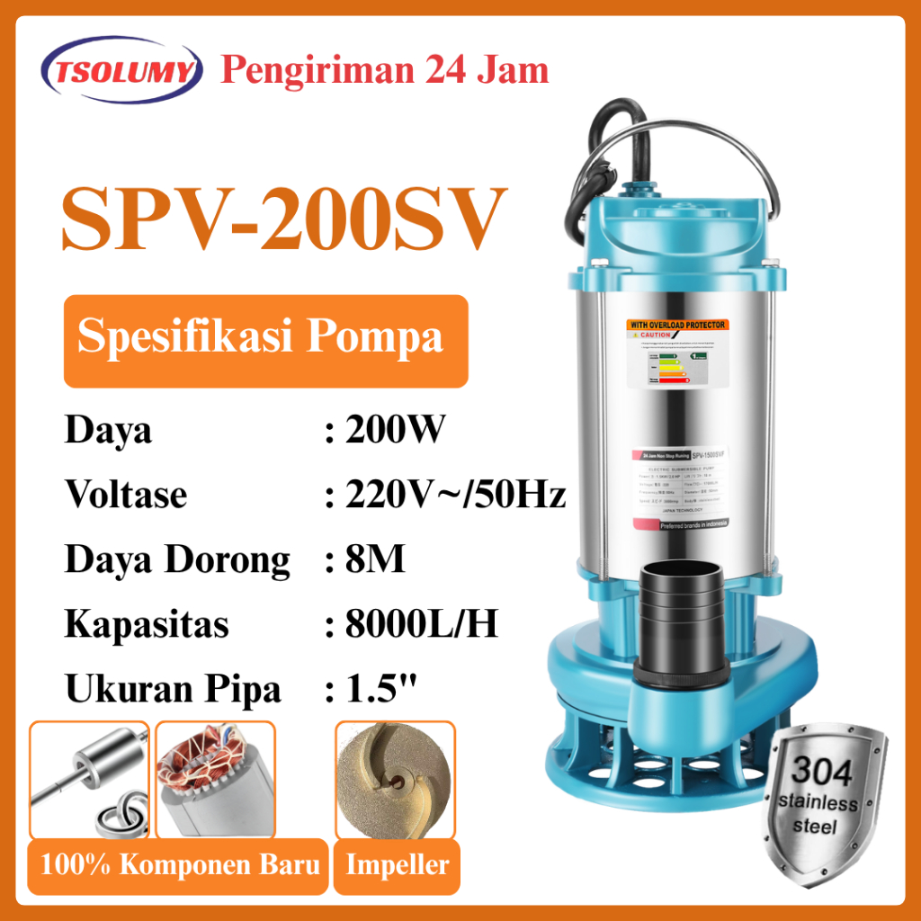 Tsolumy Pompa Celup Air Bersih Kotor 200W 1.5inch Stainless Steel Submersible Sewage Pump - lap13
