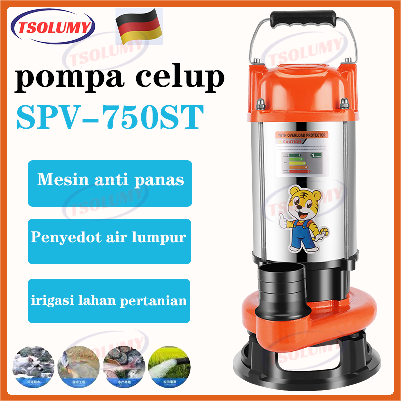 Tsolumy Pompa Celup Air Kotor SPV-750ST 750W Stainless Submersible Pump 2 In Pompa Kolam lkan Banjir
