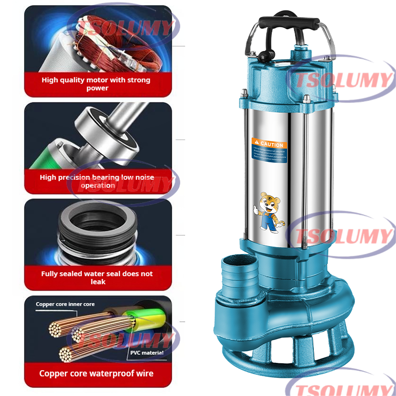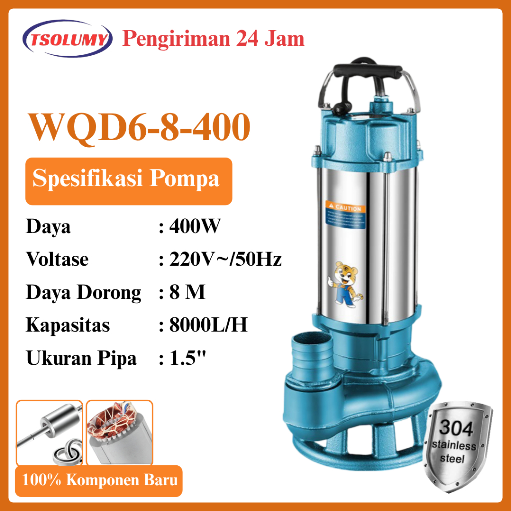 Tsolumy Pompa Celup Air Kotor WQD6-8 400W Stainless Steel Submersible 1.5 Inch Untuk Kolam & Limbah