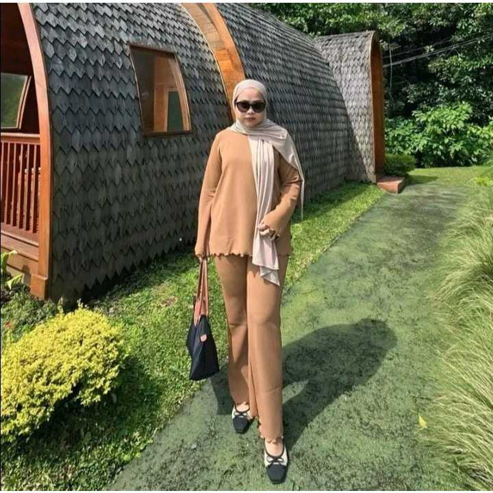 Setelan Fuji Celana Cutbray Bahan Knite Japan Premium Casual Santai Nyaman dan Lembut