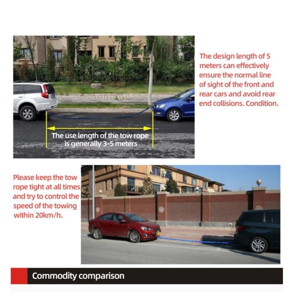 Emergency Tow Rope 5Ton 4M - Tali Derek Mobil Kawat Baja M10 & Hook Anti Karat