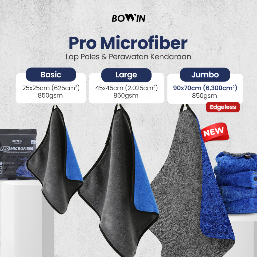 Bowin Kain Lap Handuk Jumbo - Pro Microfiber 800Gsm (Lap Polish & Detailing Exterior Interior)