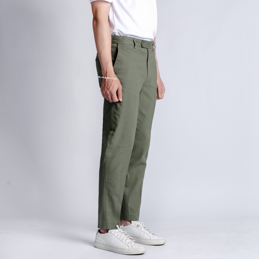 BLUEBUTTON Celana Chino Ankle Pants Slim Fit Celana Panjang Pria Sage