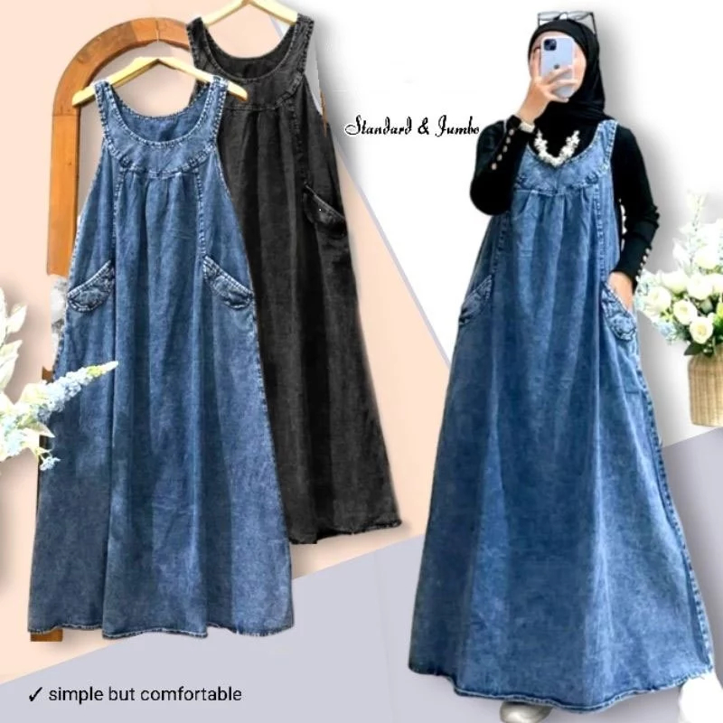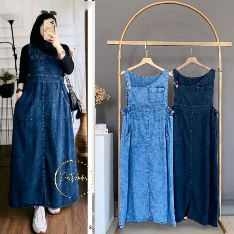 Overall Wanita Korean Style Jeans Jumbo Kekinian Terbaru Hitam Blue Denim Bahan ORIGINAL PREMIUM TERLARIS