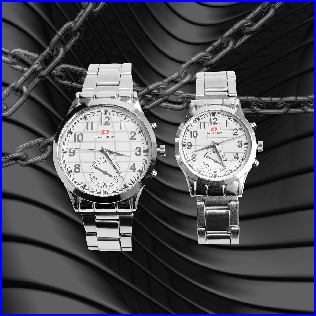 Jam Tangan Rantai Silver Couple Full Angka Chrono Bawah No Aktif R26