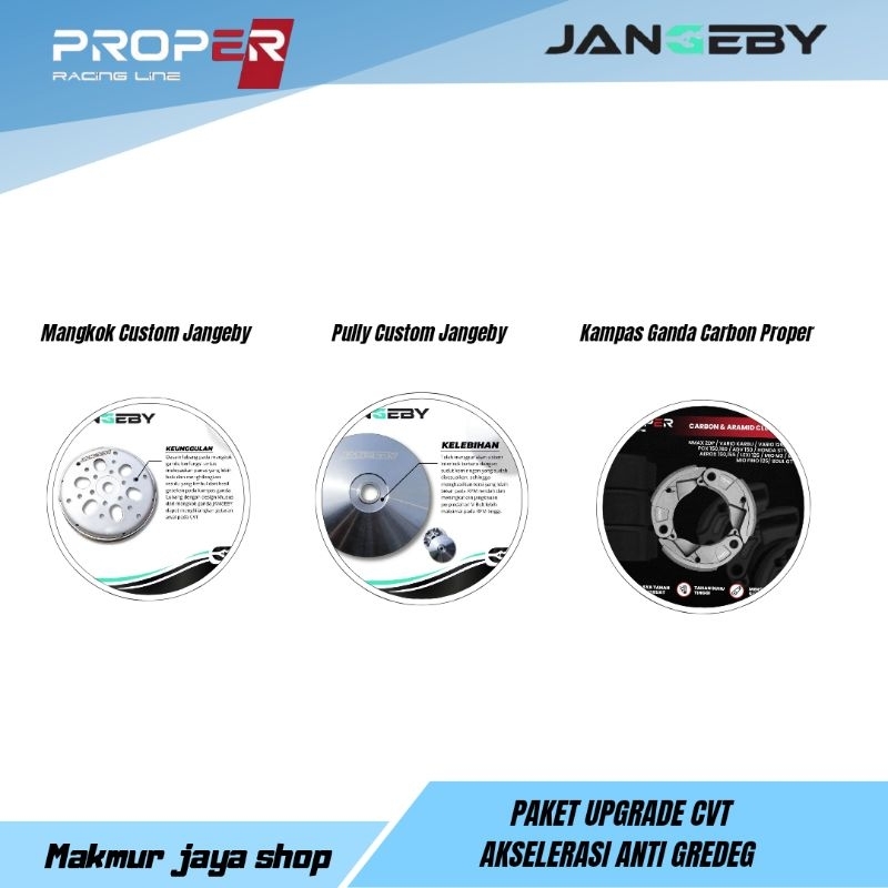 PAKET UPGRADE CVT VARIO 125/150/160 / PCX 150/160 / ADV 150/160 STYLO 160 PULLY JANGEBY KAMPAS GANDA CARBON PROPER
