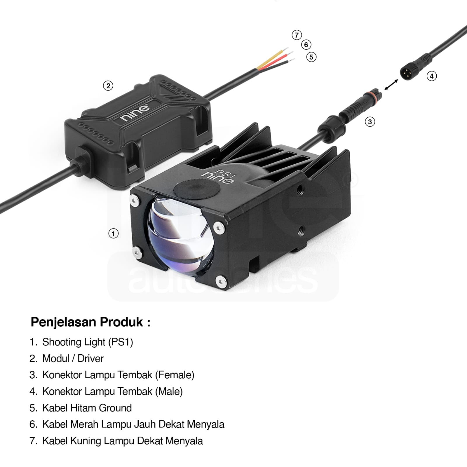Lampu Tembak Sorot Motor Mobil 1 Mata Double Lens NINE LUXIMOS LED PS1 45 WATT PUTIH
