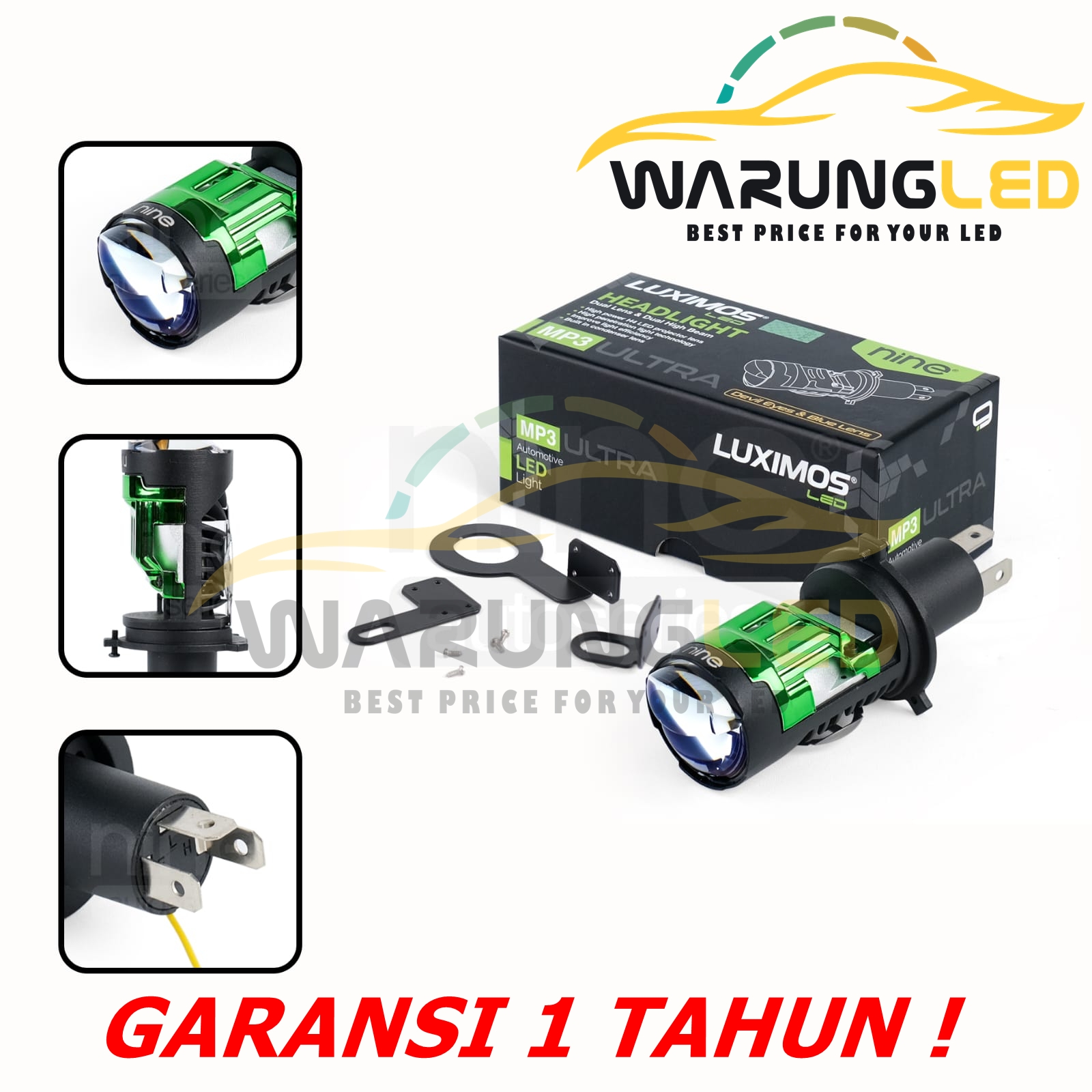 LAMPU LED MOBIL NINE LUXIMOS LED MP3 ULTRA H4 DEVIL EYE BIRU – 50W CSP Chip