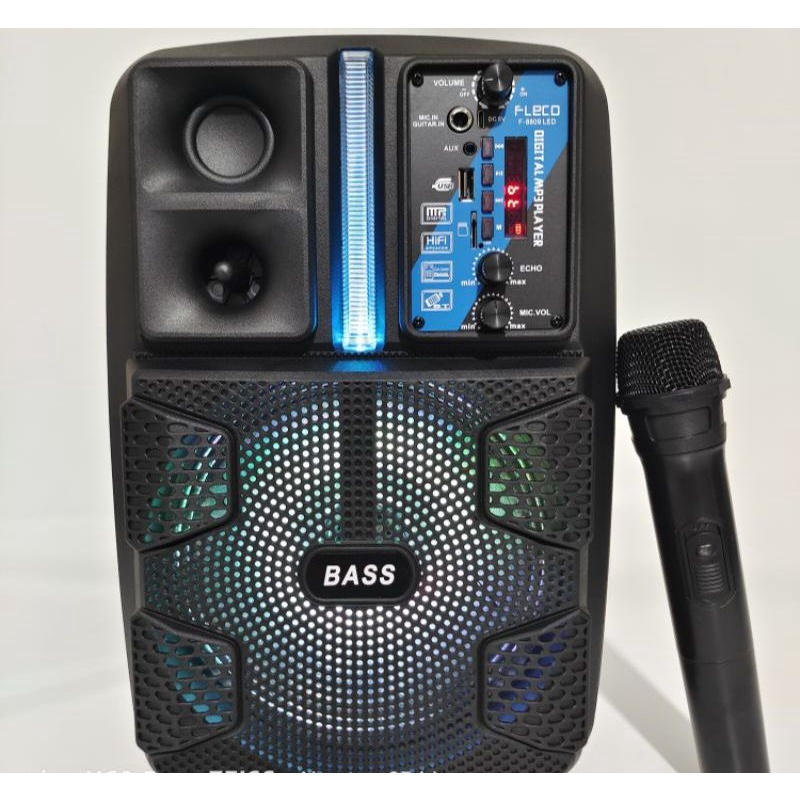 [Star] Speaker Bluetooth FLECO X-BASS F-8809LED 8,5 Inchi Free Tripod Dan Microphone Wireless Karaoke Remot Control