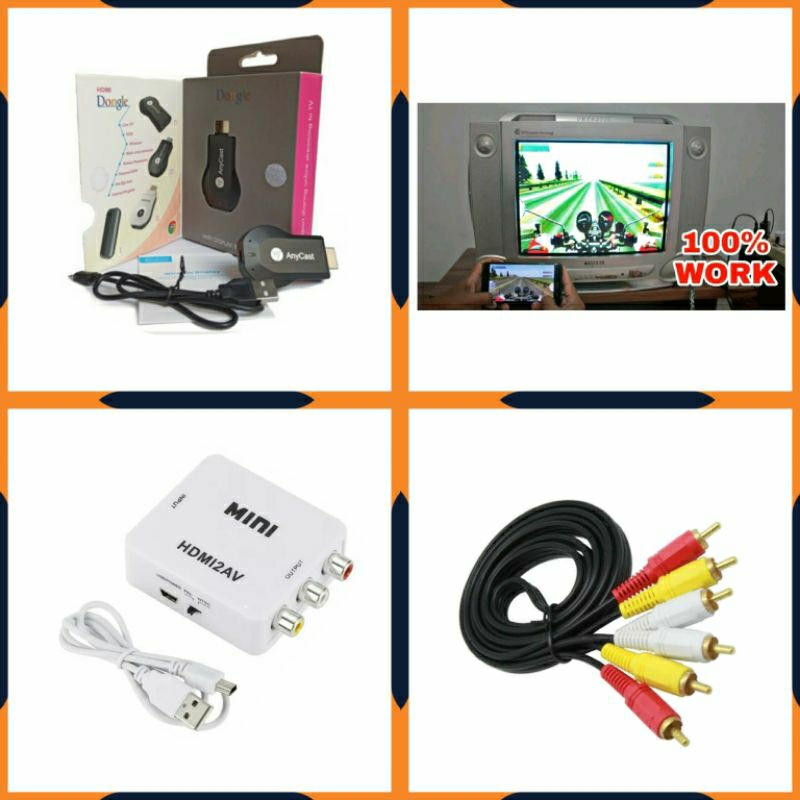 [] PAKET LENGKAP ANYCAST DONGLE DARI HP KE TV TABUNG / WIRELESS ANYCASH DONGEL MIRACAST / KABEL RCA 3-3 1.5M / PENYAMBUNG HP KE TV
