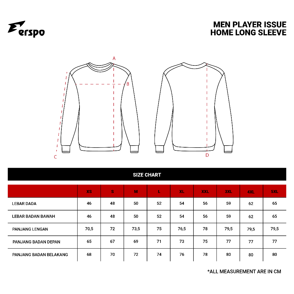 Erspo Timnas 2025 Jersey Player Issue Home LS Men Red White