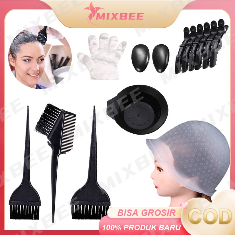 Paket Perlengkapan Cat Rambut Semir Toning Bleaching Topi Highlight Silikon Alat Lengkap Murah Pencelup Pewarna Sisir Sikat Mangkuk Earmuff Alat Pewarna Set