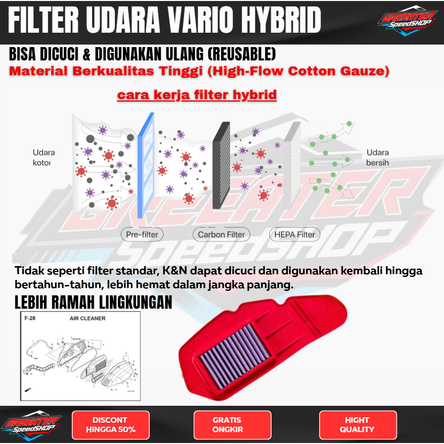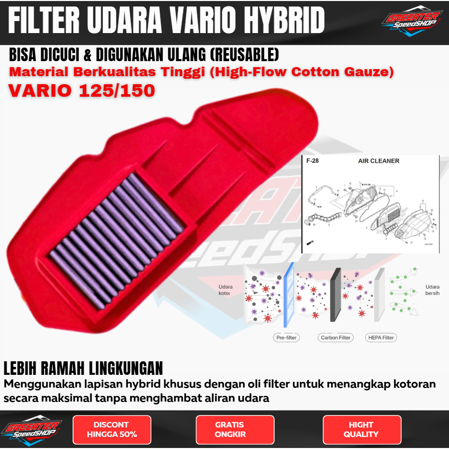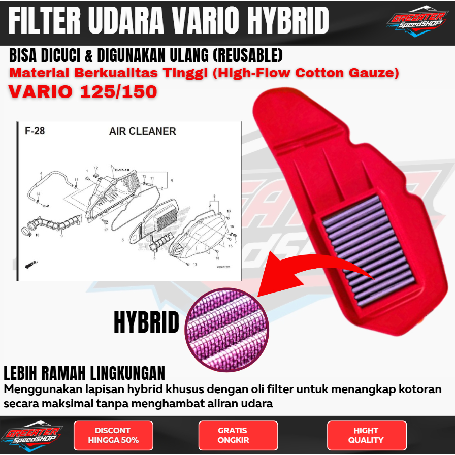 Saringan Filter udara HYBRID Vario 150 125 CLICK Filter udara xtreme ferrox ferox saringan udara vario 125 vario 150 box