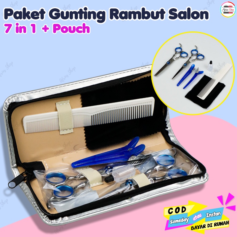 Paket Gunting Rambut Barbershop Set Gunting Rambut Salon + Sisir Salon + Pouch