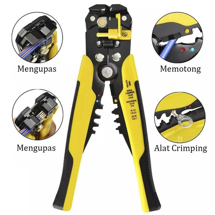 TERLARIS TANG KUPAS POTONG KABEL MULTIFUNGSI OTOMATIS6526KUNING