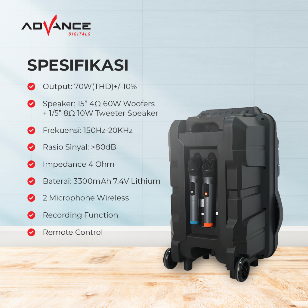 K1507 Speaker Bluetooth Portable 15 inch Dengan Handle Koper FREE 2 Microphone Wireless