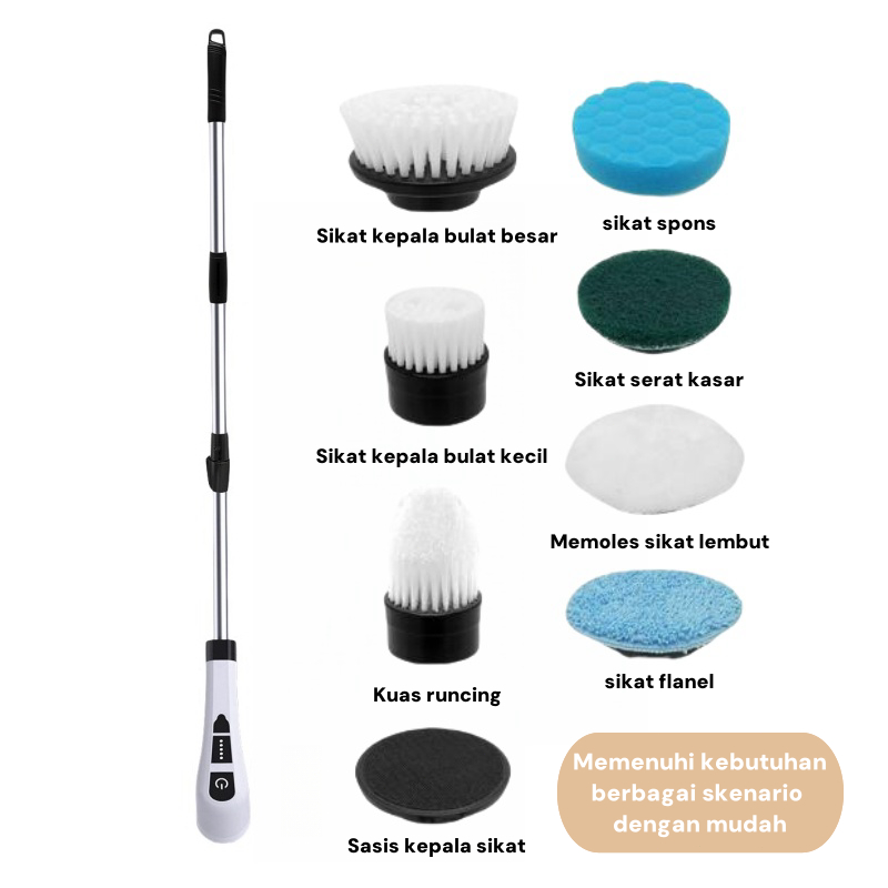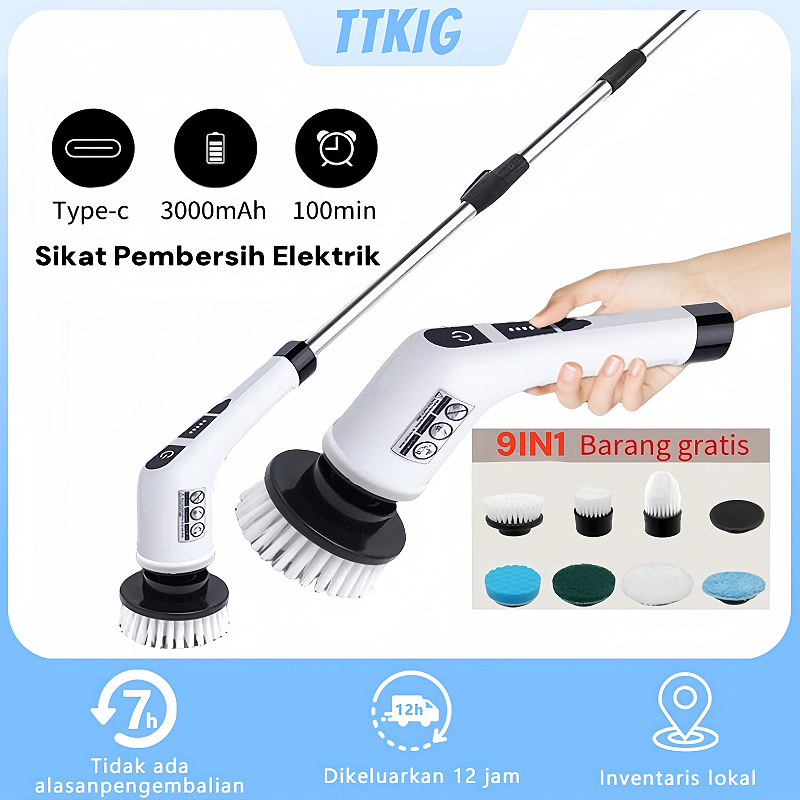 Sikat Pembersih Elektrik 9IN1 Portable Electric Cleaning Brush 9IN1 Membersihkan Noda Mudah Dengan 9 Kepala Sikat Berbah