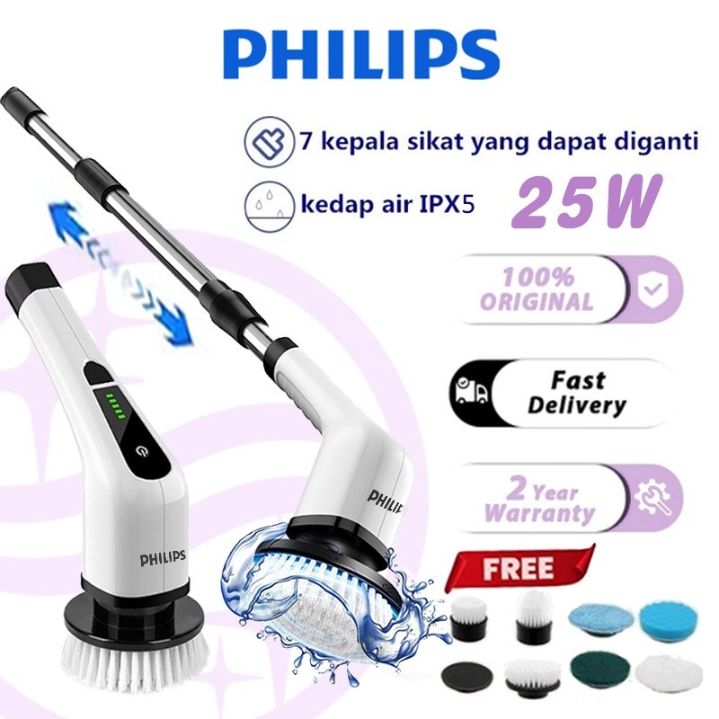 Sikat Pembersih Elektrik Philips 7in1 Portable Lantai Kamar Mandi Scrubber Tahan Air Pembersih Noda
